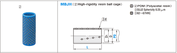 - Bạc bi nhựa MBJH là phụ kiện khuôn mẫu được sử dụng để lắp ráp trong trục bạc dẫn hướng của khuôn mẫu các loại như khuôn đột dập, hệ thống dẫn hướng của jig đồ gá, các hệ thống chuyển động của máy.